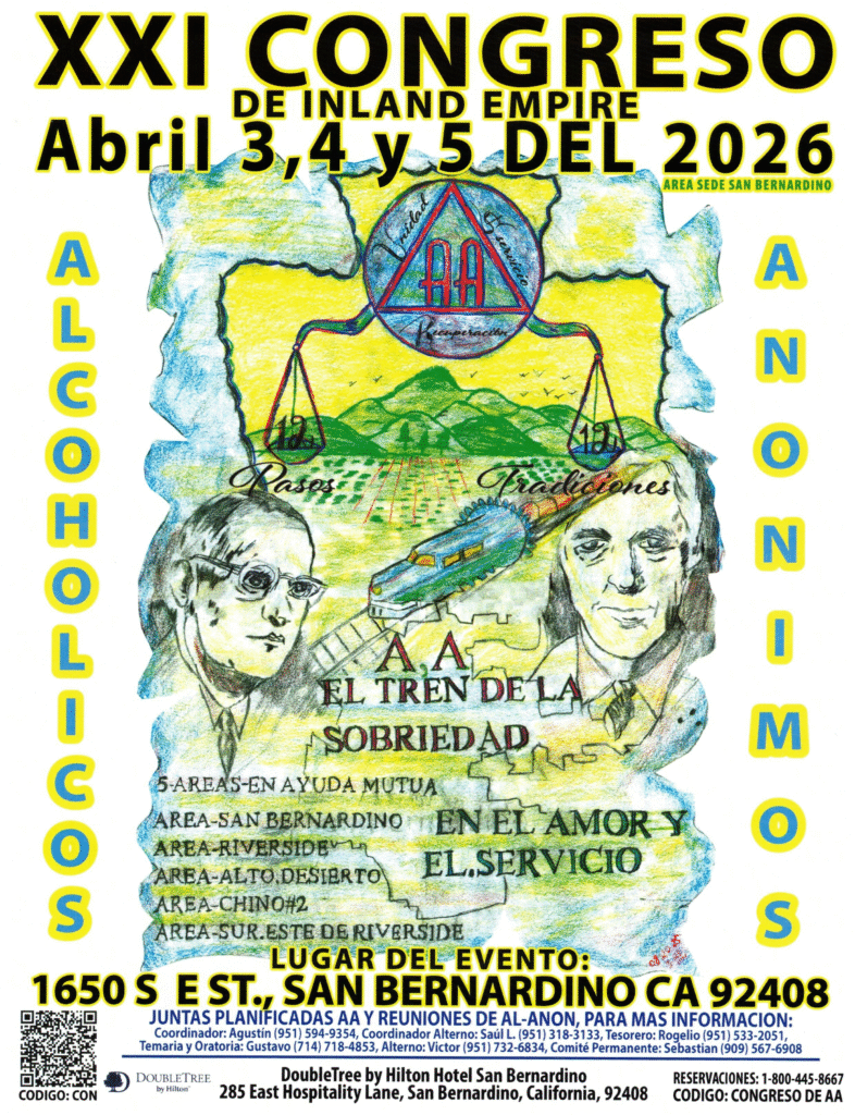 En Octubre 24 en la junta de la Oficina Intergrupal Hispana del alto Desierto, nos visito el comite del XXI Congreso de San Bernadino que se llevara a cabo en el mes de Abril del 2026 para darnos Informacion y pedir el apoyo de nuestra pagina web; con el unico proposito de hacer llegar mas informacion a los grupos de su area; porque la Oficina de San Beranardino esta trabajando para adquirir su propia pagina. ESTAMOS PARA SERVIRLES.